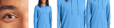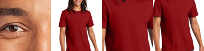 - 7.7-ounce, 81% recycled polyester/8% polyester/11% spandex interlock knit (heathers)