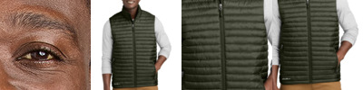 Designed with traditional quilt lines, this insulated vest is built for warmth and weather-resistant performance. Features include full-length interior storm flap with chin guard, exposed, molded zippers with Eddie Bauer logo pulls, zippered hand pockets and a slight drop tail hem. Includes a decoration access pocket. Packs into zippered left hand pocket. Contrast Eddie Bauer heat transfer logo on right hem. Made of 100% polyester ripstop and 3-ounce, 100% polyester blown fill. PU coating on back of shell. Durable water-repellent (DWR) finish.