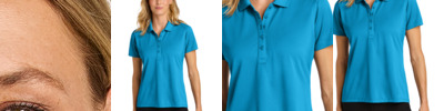 - 4.6-ounce, 95/5 polyester/spandex mesh pique; White is 5-ounce for increased coverage
